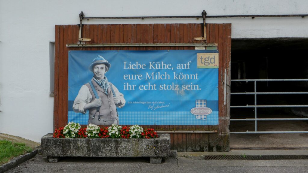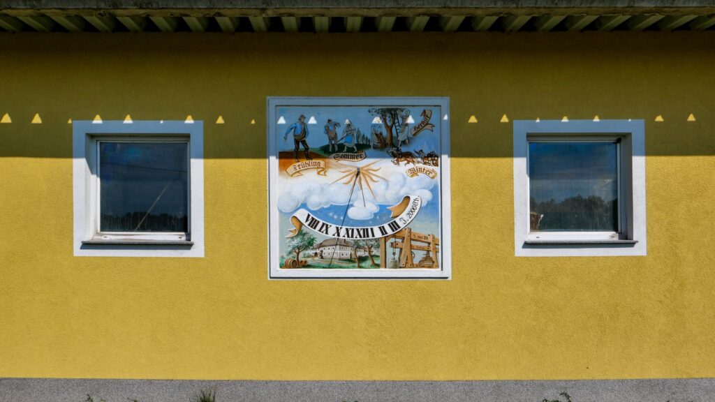 Le plan se déroule comme prévu. Nous traçons sous le soleil à travers les champs de haricots et de maïs, juste interrompus par une dame qui nous demande si nous n’avons pas vu son gros chien. Nein. Kein Hund. Nous commençons à monter lorsque les nuages arrivent et la température se met à baisser. Nous atteignons enfin la croisée des chemins où nous devons prendre notre décision. Ça tombe bien, il y a une petite chapelle et un banc, tout ce qu’il faut pour prendre une décision éclairée. Le radar météo est sans appel, nous venons de rentrer dans la zone bleu clair, et le bleu foncé s’annonce dans la demi-heure. Pas d’hésitation, entre l’option 1 – Tranquillité et l’option 2 – Aventure, nous choisissons l’option 1. Les nuages ont la gentillesse de nous conforter dans notre choix par quelques gouttes qui nous accompagneront jusqu’à Grein où nous arriverons avant la grosse saucée. Ouf ! Enfin… pas vraiment, car la grosse saucée annoncée se transforme finalement en une timide averse.