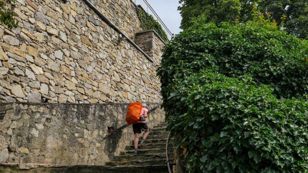 « Mon ennemi, c’est la finance ! », avait déclaré François Hollande lors de sa campagne présidentielle en 2012. Eh bien, « Notre ennemi à nous, c’est le Ruhetag ! », le jour de fermeture hebdomadaire des restaurants. Et à la différence de François Hollande, nous c’est vraiment vrai ! Notre hantise, c’est d’arriver à l’étape et de découvrir qu’il n’y a nulle part où manger, tous les restaurants étant en Ruhetag. Ils ont le droit de se reposer, pas de problème, mais nous, il faut qu’on sache un peu à l’avance pour acheter quelque chose sur le chemin. Les plans « Nous zommes fermés mais il y a un restaurant ouvert dans le fillage foisin à zinq kilomètres », on n’aime pas trop. Du coup, on essaie toujours de regarder où on pourrait manger et si c’est bien ouvert.