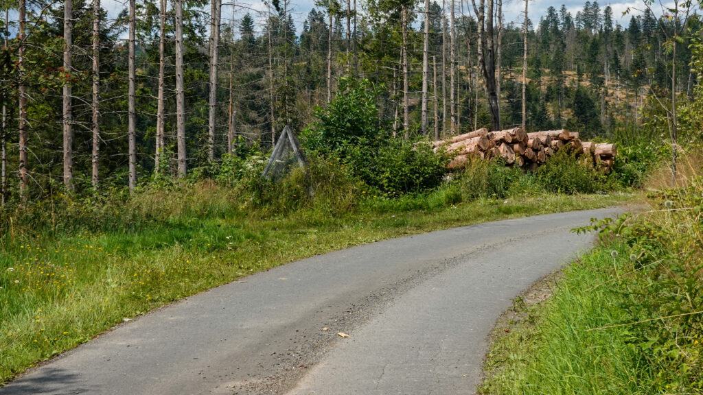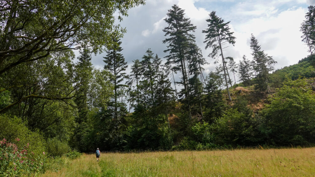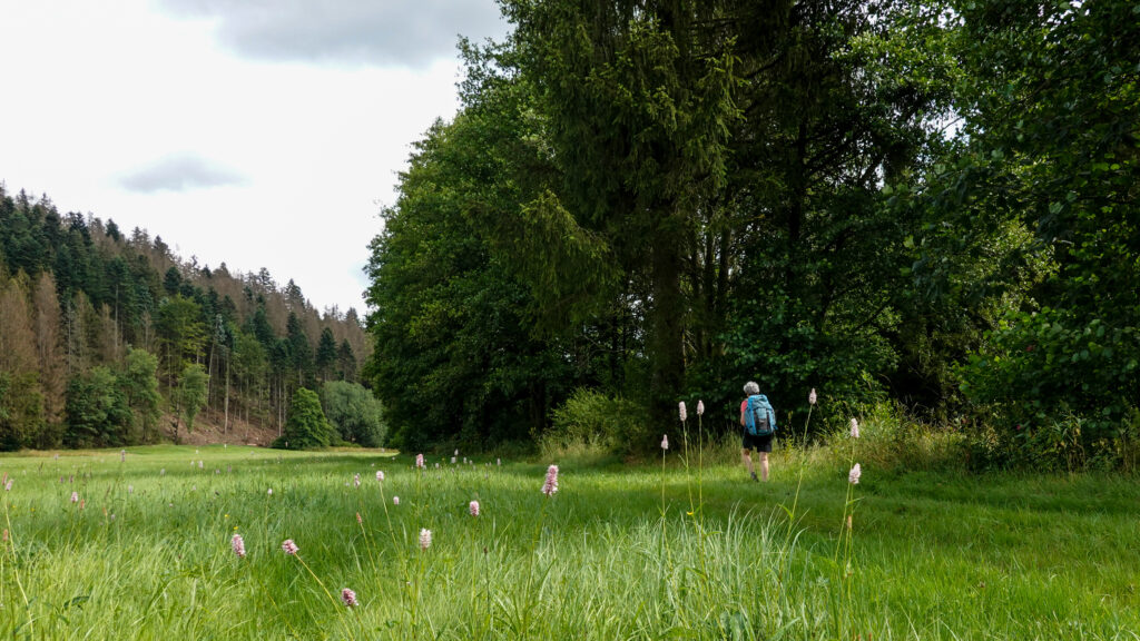 Ce fut long, mais ce fut beau ! Nous avons suivi deux vallées, celle de la Grössau d’abord puis sur 10 km celle de la Dober, magnifique vallée en auge occupée par une infinie prairie, à l’écart de toute circulation automobile. Un vrai bonheur ! Nous avons terminé par une succession de montées et de descentes à travers les forêts de pins qui auraient été formidables si les chemins n’étaient pas si souvent défoncés par les engins « forestiers », déforestiers serait plus juste, voire déforestateurs, si nous en jugeons par les trop nombreuses coupes franches.