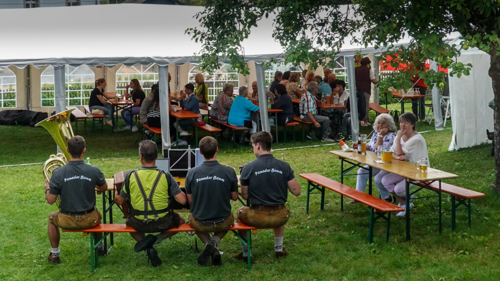 Tout cela nous amène paisiblement à notre Gasthaus isolée dans les bois. Et quand nous arrivons… le choc ! Nous nous retrouvons au milieu de centaines de personnes ! Was passiert? Eh bien, il y a là un théâtre en plein air et nous sommes arrivés pile à la sortie de la représentation. Une heure plus tard, le lieu était à nouveau calme et paisible. Ouf !
