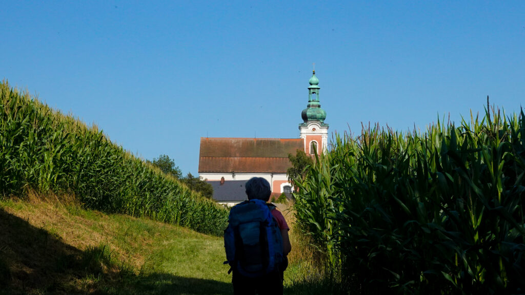 À Waldsassen justement, nous découvrons que c’est une étape d’un chemin de Jérusalem qui démarre de l’abbaye de Volkenroda, au nord, et descend jusqu’à Passau pour sa partie allemande. Tiens, tiens, Passau, comme nous ! Le chemin traverse ensuite l’Autriche, la Hongrie, la Serbie, le Kosovo, la Macédoine du Nord, la Grèce, la Turquie, la Syrie, la Jordanie pour atteindre enfin Jérusalem. D’ici qu’on arrive là-bas, les affaires se seront peut-être arrangées : Netanyahu sera derrière les barreaux, la Cisjordanie sera libre, l’Iran sera présidé par une femme avec des couettes,… J’en doute, mais en attendant, ça peut quand même déjà nous donner une idée pour l’an prochain avec la traversée de l’Autriche sur le Jerusalemweg. C’est vrai que Jerusalemweg, ça sonne quand même mieux que « E6 », le nom de notre chemin actuel. A étudier…